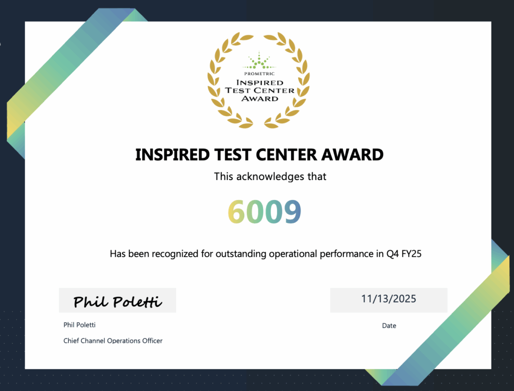 We have a state-of-the-art testing facility built to comply with specific Prometric standards